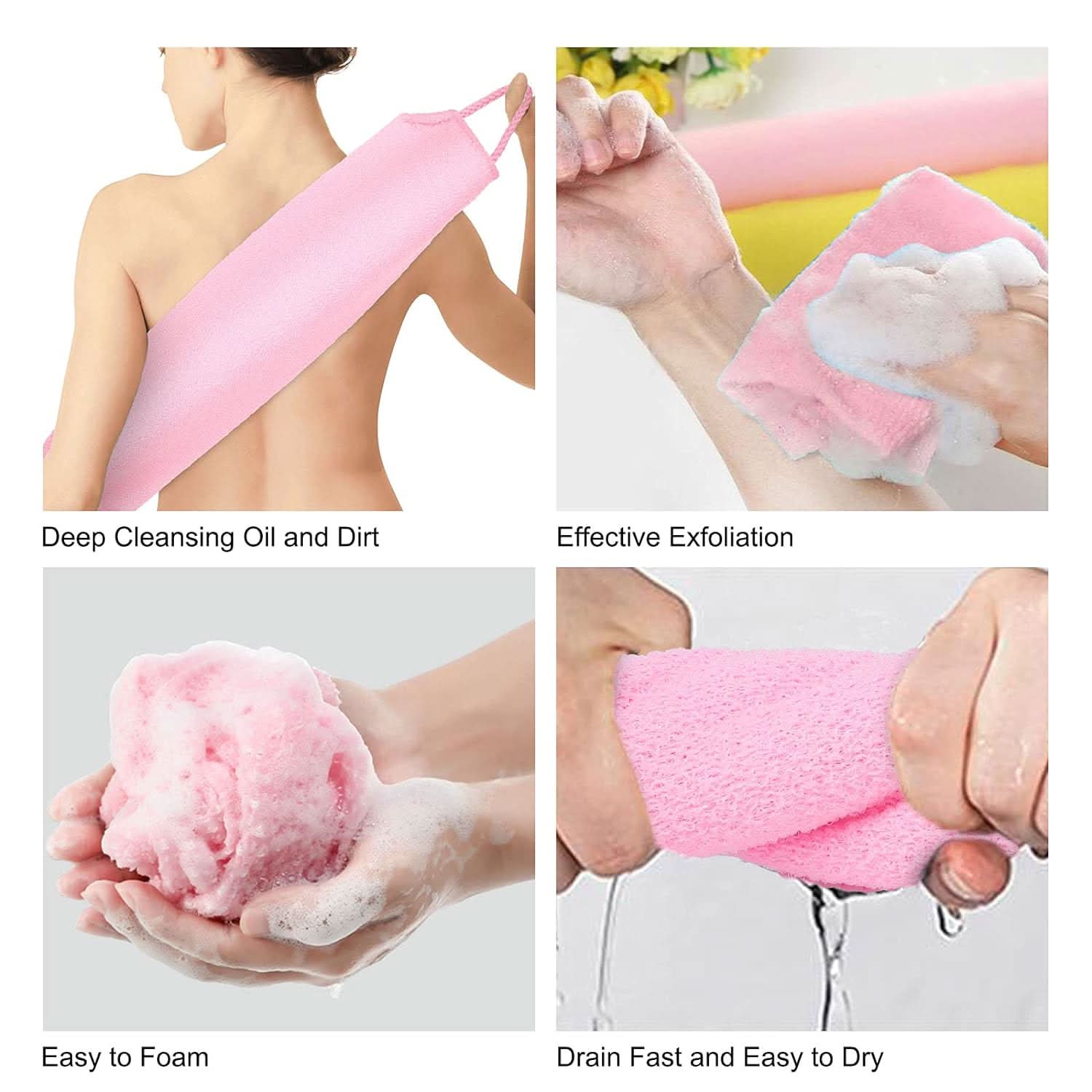 Het enige wat je hoeft te doen is wat zeep of douchegel gebruiken en het nylon exfoliërende washandje schuimt  zo gemakkelijk op dat je genoeg schuim hebt om je lichaam te wassen. Hierdoor wordt de directe wrijving tussen zeep of douchegel en de huid verminderd.