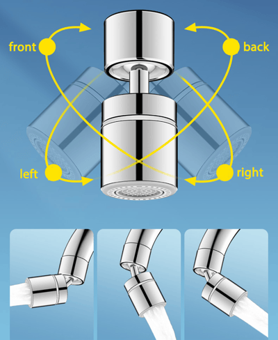 360° Draaibare Wastafelkraanbeluchter: De draaibare wastafelkraanbeluchter kan 360 graden draaien, wat flexibiliteit en toegang tot alle hoeken van de badkamer of wastafel mogelijk maakt. Hierdoor kunnen zelfs moeilijk bereikbare gebieden gemakkelijk worden gereinigd.