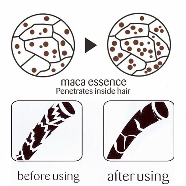 Geef beschadigd haar magische, activerende energie van de wortels tot de punten, herstelt droge en beschadigde haarvezels grondig en vult de haarholtes op, waardoor het haar gehydrateerd, netjes, glad en glanzend wordt.