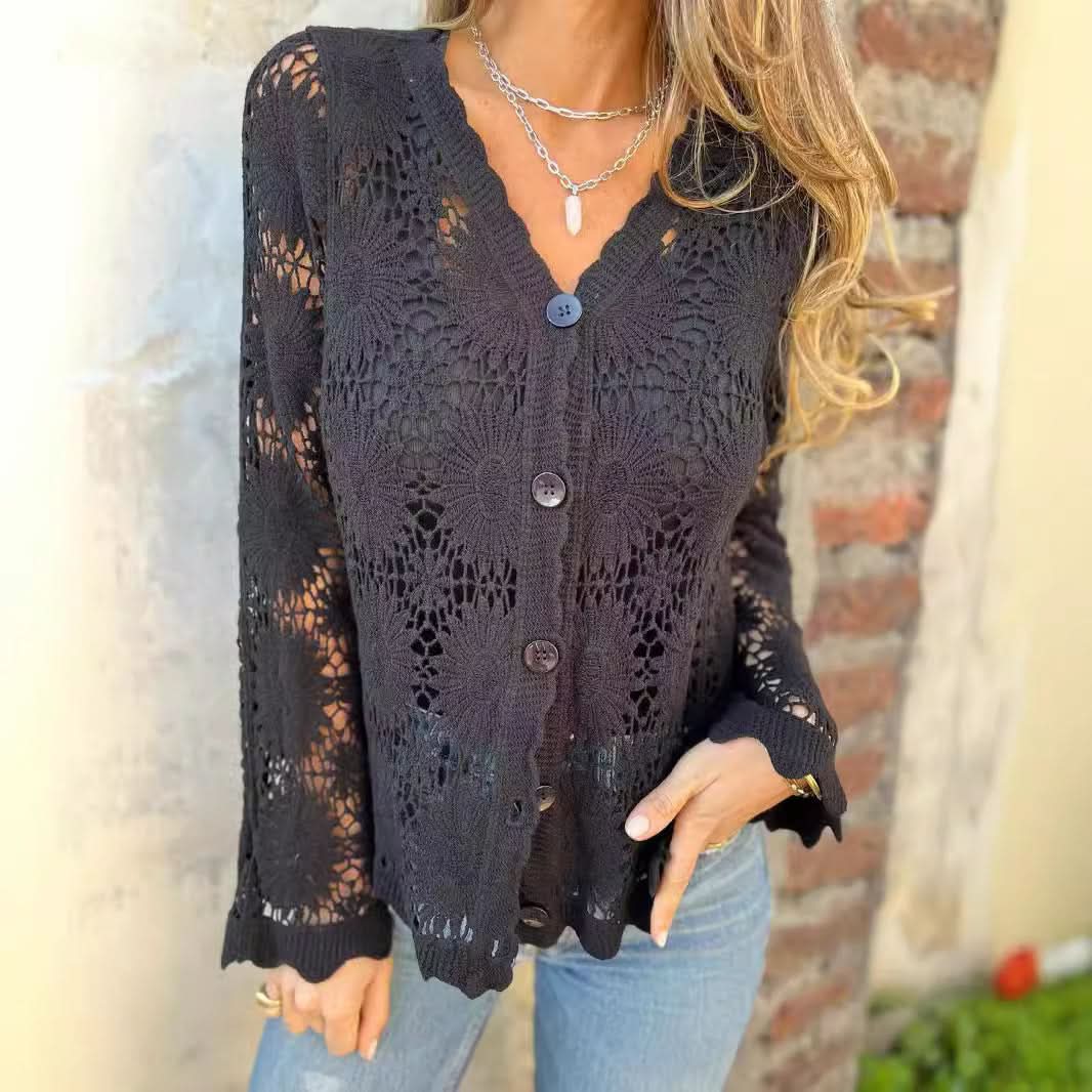 🌸Uitverkoop 50% korting Langarm Top met V-hals van Kant voor Vrouwen