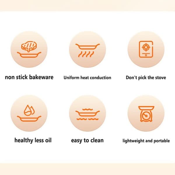 Rapid heating, uniform heat conduction, suitable for use on multiple stoves. No oil running, no oil splashing, suitable for cooking and grilling.