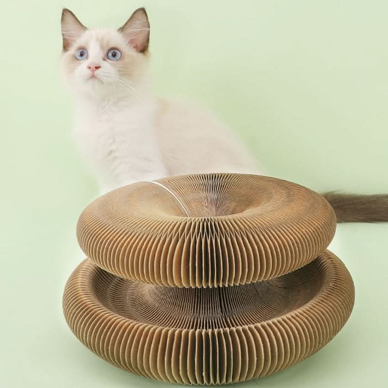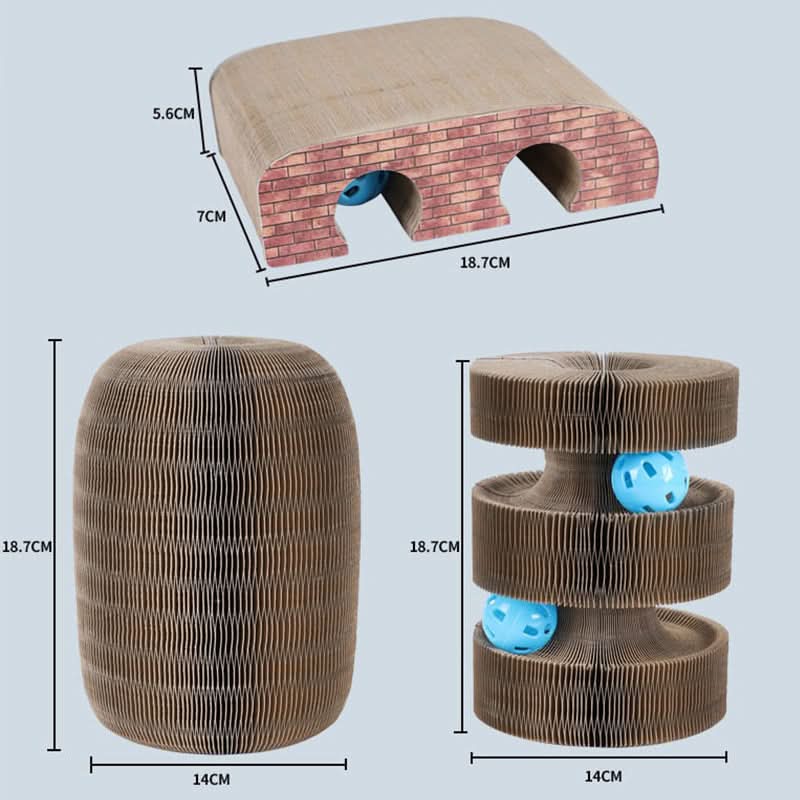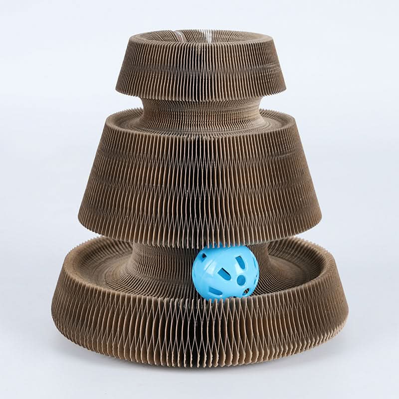 Deze opvouwbare krabplank is gemaakt van hoogwaardig verdikt papier dat in verschillende vormen en maten gevouwen kan worden en de natuur van de kat de vrije loop kan laten .