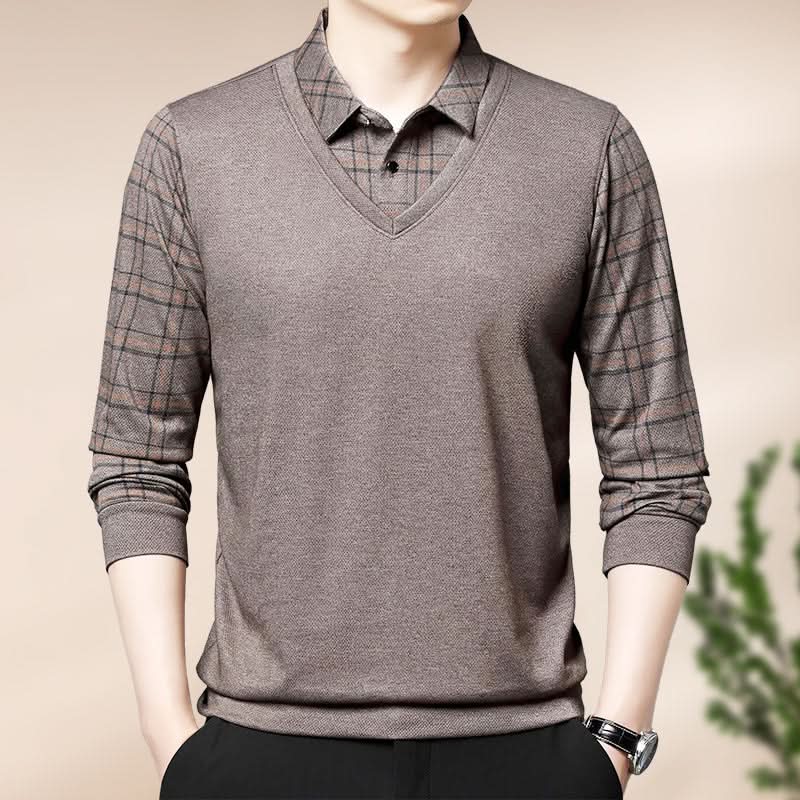 NEP TWEE-DELIGE STIJL: Deze top met lange mouwen heeft een slim nep twee-delig ontwerp, dat de gelaagde look van een shirt en vest nabootst. Bereik moeiteloos een casual maar stijlvolle uitstraling—een essentieel stuk voor je garderobe.