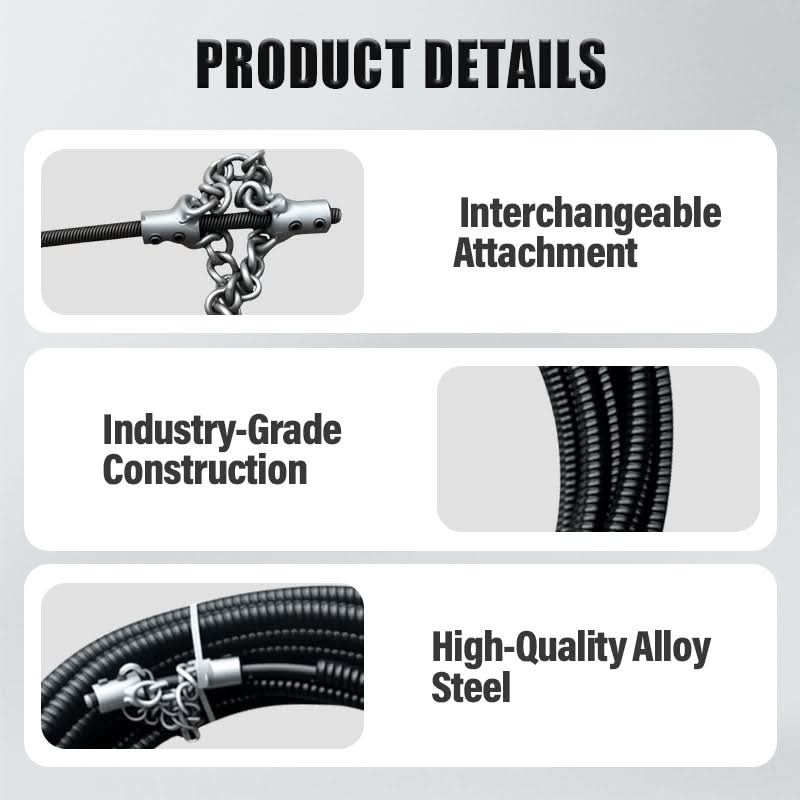 INDUSTRIËLE CONSTRUCTIE: Gesmeed uit hoogwaardig gelegeerd staal dat bestand is tegen herhaaldelijk gebruik. Het corrosiebestendige materiaal behoudt de structurele integriteit, zelfs bij het draaien door scherpe bochten of dichte verstoppingen.