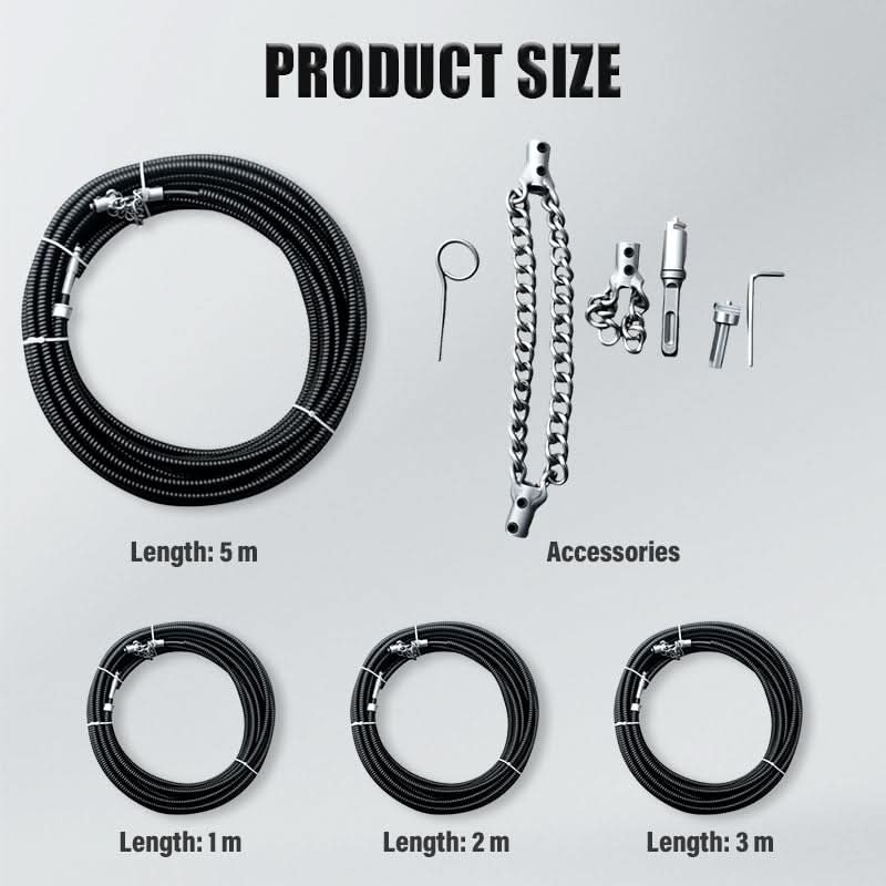 VEELZIJDIG IN MEERDERE LENGTEN: Verkrijgbaar in lengtes van 1 tot 4 meter voor verschillende scenario's. Kortere stangen zijn ideaal voor gootsteenafvoeren, terwijl langere lengtes diep in de hoofdriolering reiken. Alle versies behouden een consistente stijfheid.
