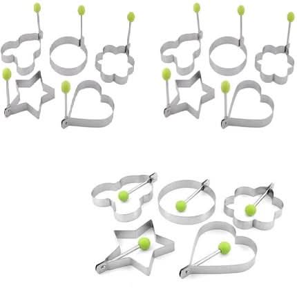 - ćVerschillende vormenć De pannenkoekvormenset heeft 5 vormen: cirkels, harten, Mickey, sterren en bloemen. Ze kunnen je helpen om verschillende soorten omelet of sandwich te maken, dus het leven is niet langer eentonig!Ā