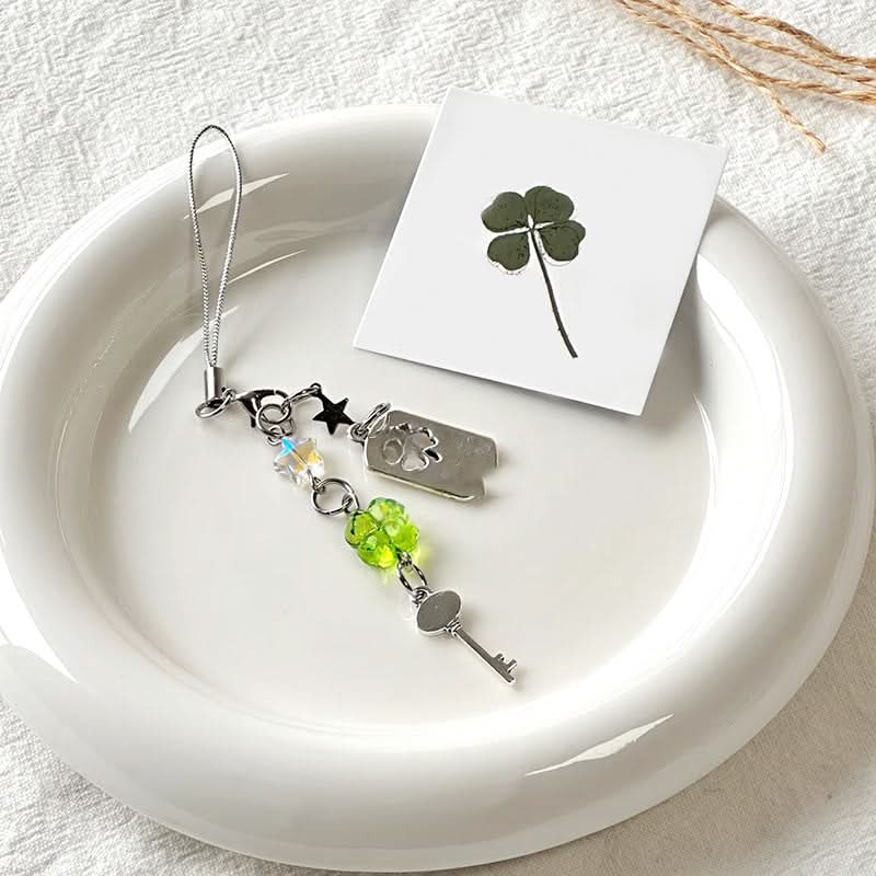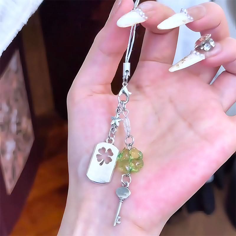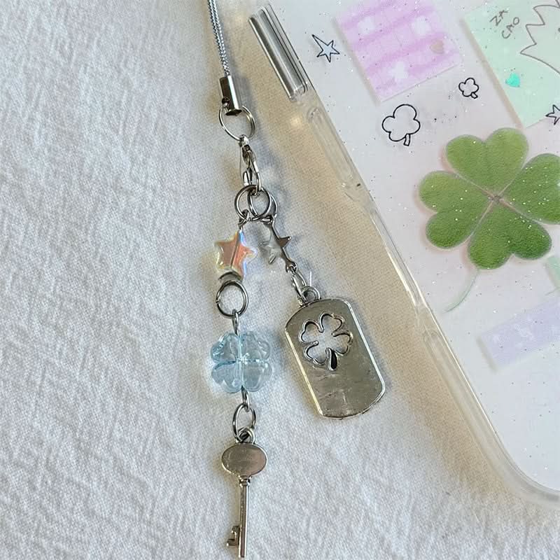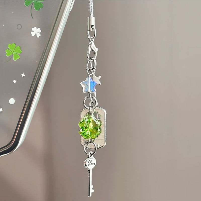 Geluks telefoonhanger met sleutel en vierbladig klavertje