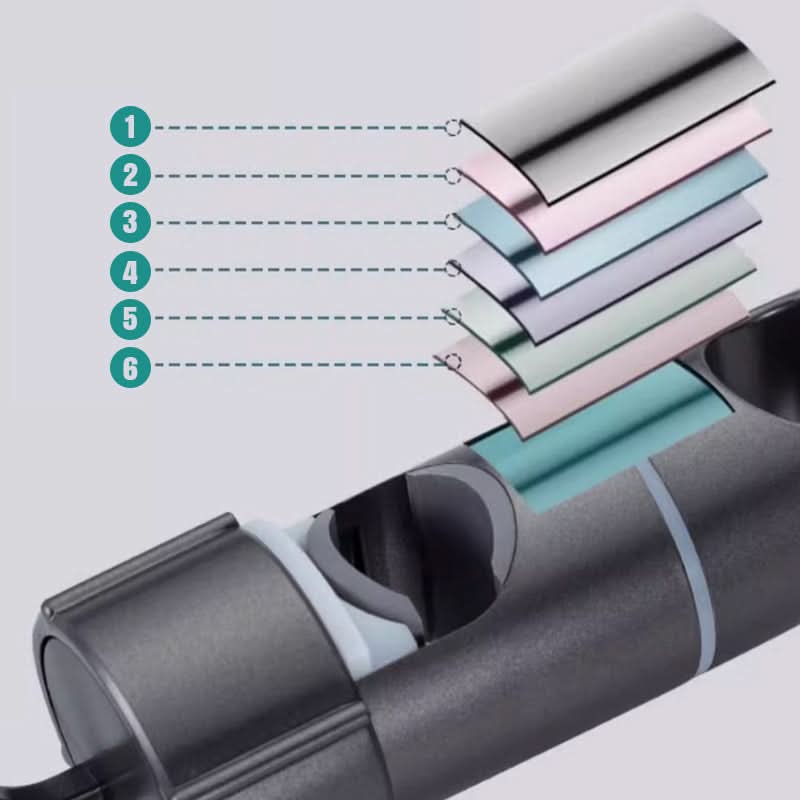VERSTERKTE ABS-BEHUIZING – Bestand tegen stoom, water en dagelijks gebruik. Het corrosiebestendige, gegalvaniseerde oppervlak (zilver, donkergrijs, zwart) behoudt jarenlang zijn glans. Geen roest, geen scheuren – alleen langdurig, betrouwbaar douchecomfort.