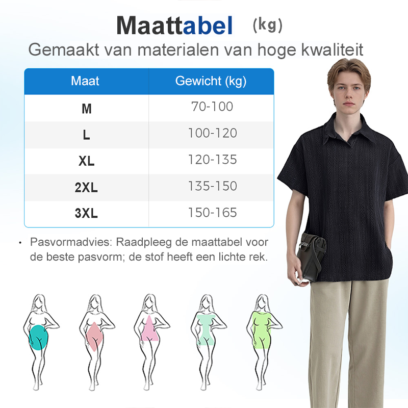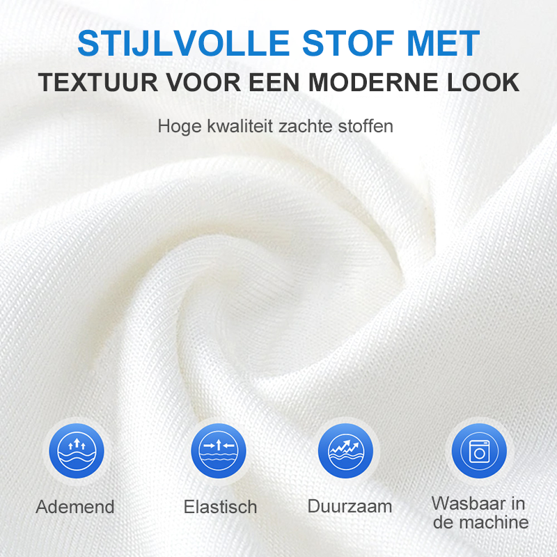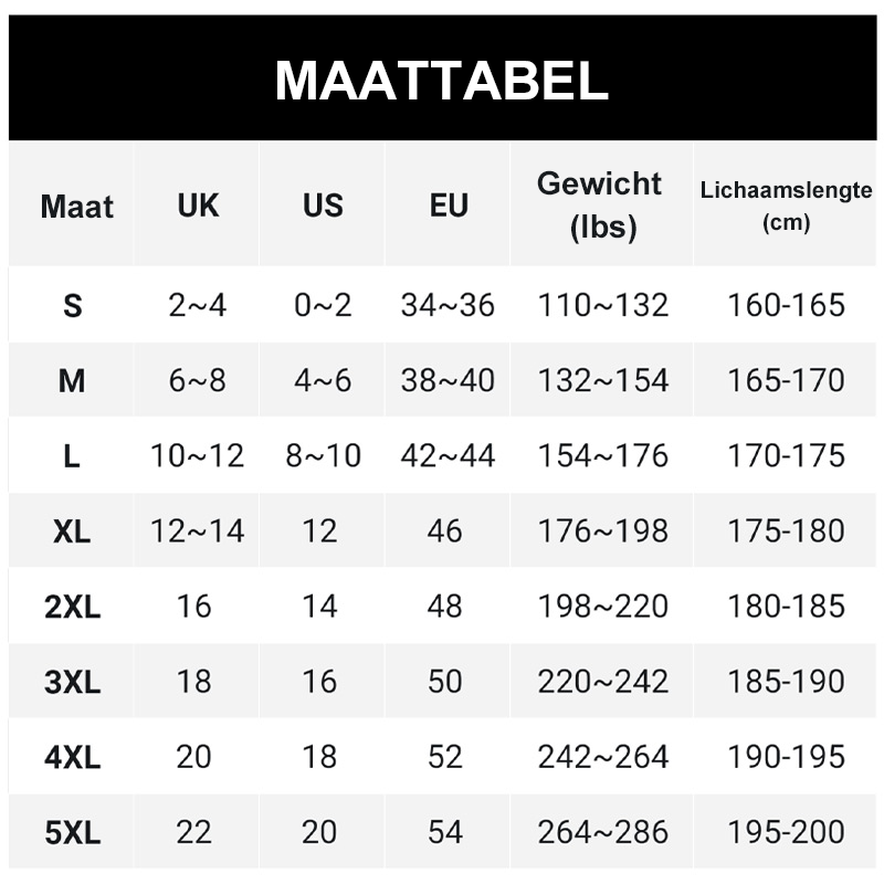 Pasvormaanbeveling: Raadpleeg de maattabel voor de beste pasvorm; de stof heeft een lichte rek.