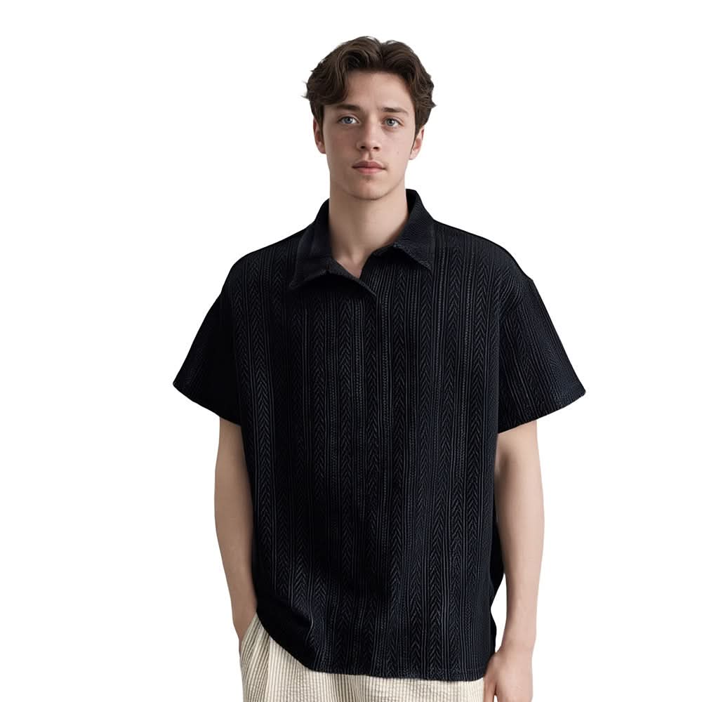 1 * Heren casual overhemd met textuur, korte mouwen en kraag