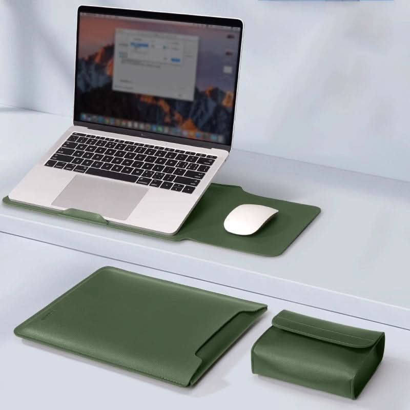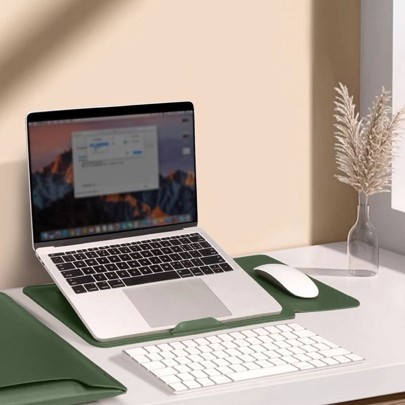 ALLES-IN-ÉÉN GEMAK & VERBETERDE BESCHERMING: Deze veelzijdige laptoptas combineert een hoogwaardige beschermhoes met een ingebouwde opvouwbare standaard en muismat, en biedt de ultieme all-in-one oplossing voor je laptop. Houd je apparaat veilig en stijlvol waar je ook gaat!