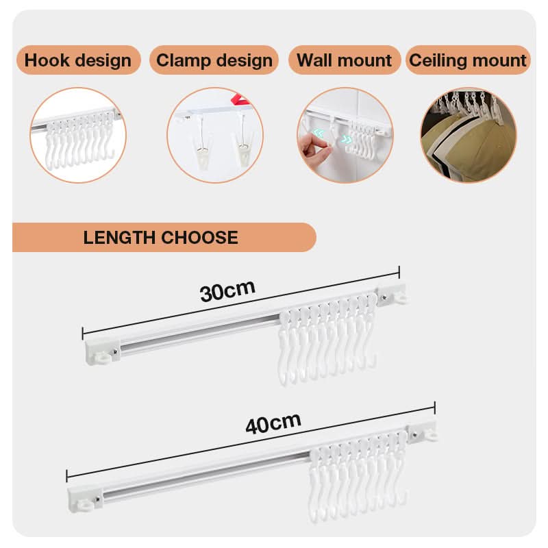 De haken kunnen naar believen worden verplaatst, u kunt de afstand tussen de haken aanpassen aan de grootte van de hangende items, erg praktisch en handig.