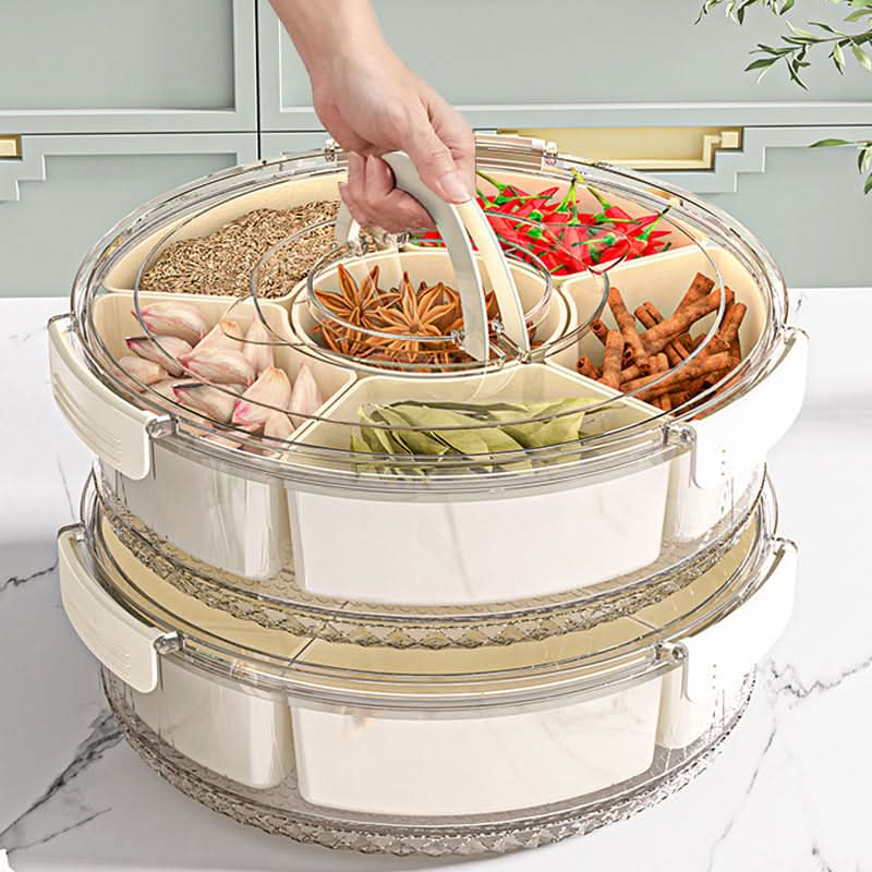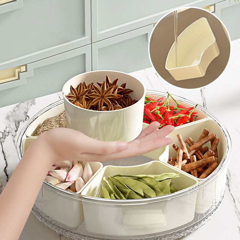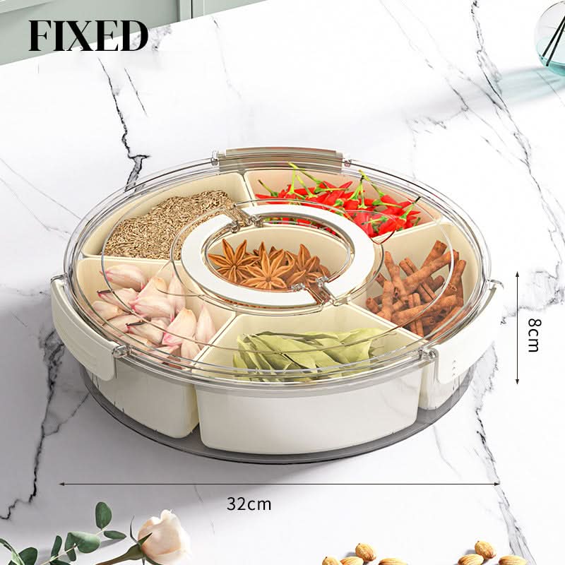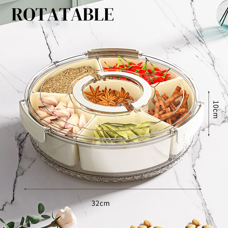 INNOVATIVE ROTATING DESIGN: Enjoy easy access with a 360-degree rotating tray featuring 6 compartments, perfect for keeping different snacks neatly separated.