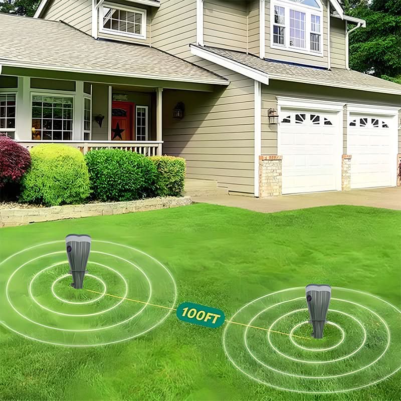 STILLE WERKING: Gebruikt een elektronische besturingsmotor om seismische trillingen na te bootsen, die mollen geruisloos verjagen zonder uw gezin of huisdieren te storen. Deze methode is effectiever en stiller dan traditionele methoden.