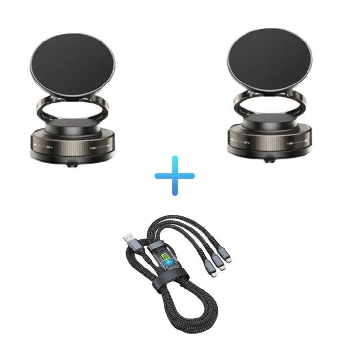 ULTRA-STERKE ZUIGKRACHT MET EEN STEVIGE GRIPĀ ā Deze magnetische telefoonhouder met vacuümzuignap combineert een verbeterde vacuümzuignap met een snel te ontgrendelen draaislotmechanisme, waardoor hij stevig vastzit. Om hem te bevestigen, draait u de knop gewoon met de klok mee - hij zit meteen vast op elk glad oppervlak. Wilt u hem verwijderen? Met een simpele draai tegen de klok in komt hij er netjes uit, zonder resten achter te laten. Hij blijft zelfs tijdens hobbelige ritten stabiel zitten. Bovendien hoeft hij niet te worden opgeladen en werkt hij geruisloos.
