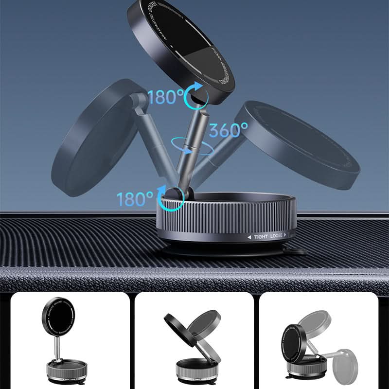 STABIEL EN DUURZAAM: Met geavanceerde vacuümzuigtechnologie en een magnetische ring hecht deze telefoonhouder stevig aan oppervlakken, zodat je apparaat op zijn plaats blijft, zelfs op hobbelige wegen, voor een stabiele kijkervaring.