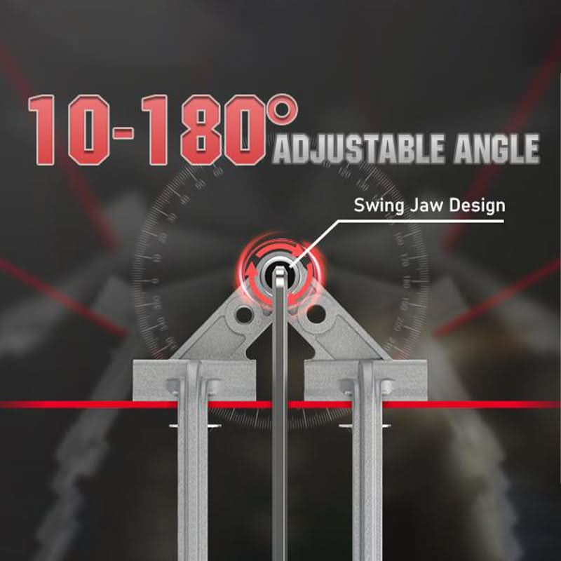 AANPASBARE SPANNINGSKRACHT EN 10-180° VERSTELBARE HOEK: Pas je klemkracht gemakkelijk aan. De instelbare hoek van 10° tot 180° biedt een veelzijdige positionering, waardoor deze klem geschikt is voor verschillende materialen en projectbehoeften, van buizen tot planken.