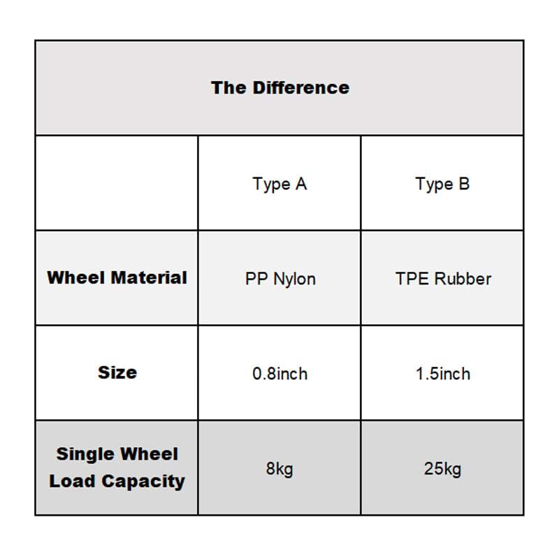 STIL BEDIENING: We hebben twee stijlen, de kleine is een PP nylon wiel voor slijtvastheid, en de grote is een TPE rubber wiel dat het schuifgeluid minimaliseert, perfect voor het handhaven van een rustige omgeving.