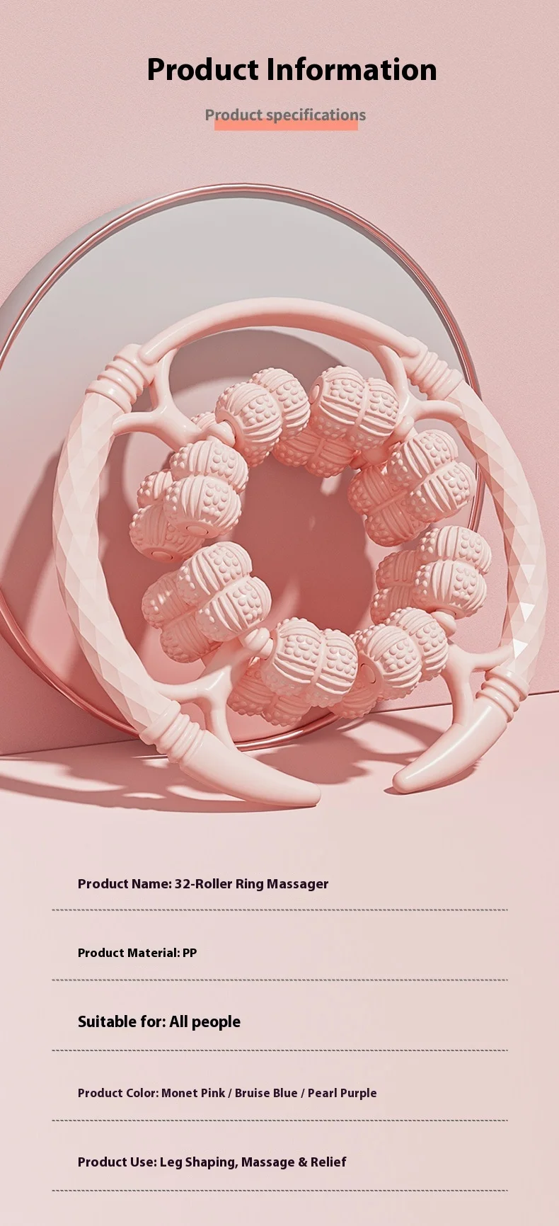 🔥 Volledig omhulde en geüpgrade 32-wiel ring massage roller die de benen klemt om de meridianen te openen, de beenspieren te ontspannen en te stretchen.