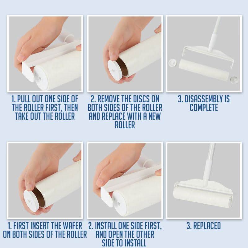 De plakvellen halen huisdierenhaar, mensenhaar, stof direct op terwijl je het gereedschap over je meubels of kleding rolt. Onze verlengde verbrede pluisroller borstel beschadigt de stof niet en laat geen sporen van lijm of pluis achter.