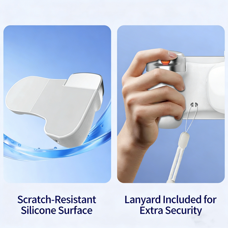 Schuif de afstandsbediening eenvoudig van de grip om foto's te maken tot 10 meter afstand. Perfect voor groepfoto's, stabiele zelfportretten en creatieve hoeken zonder je scherm aan te raken – geen meer onscherpe foto's door trillen!