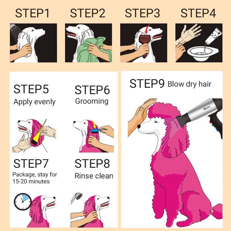 NIET-GIFTIG EN VEILIG: Deze kleurstof is gemaakt met pigmenten van voedingskwaliteit en is niet-giftig en veilig voor alle huisdieren. Zo kunt u met een gerust hart uw harige vriend wat kleur geven.